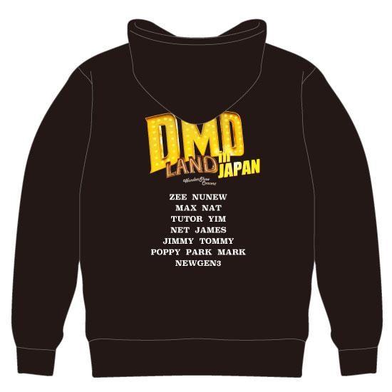背中にDMD LANDのロゴがデザインされたフーディ。